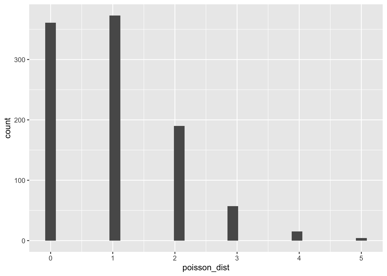 theme_light() poisson_dist <- rpois(n = 1000, lambda = 1)