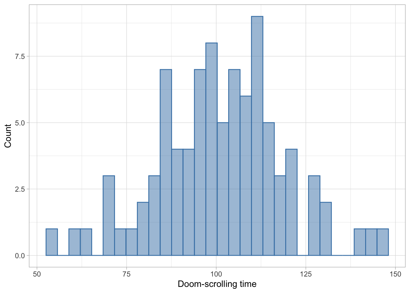To find out how much a typical individual doom-scrolls, we could calculate the mean (or some robust alternative if we’re worried about outliers):